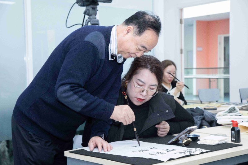 今日下午,廖教授带来了一场令人叹为观止的《史晨碑》临帖中笔划书写与常见笔病课程。正如朱熹所言:“读书之法,在循序而渐进,熟读而精思。读书有三到,所谓心到、眼到、口到。”廖教授授课亦是心、眼、口并用,他从偏旁部首起始,认真示范,耐心讲解,将临帖和创作的精妙之法倾囊相授。书法与国学本就密不可分,在授课过程中,廖教授更是将二者完美融合。他不仅精心指导学员,还亲自写好示范笔墨带到课堂展示,让大家研习。经过廖教授几次课程的悉心教诲,部分学员进步神速,其书法水平大幅提升,赢得了廖教授的称赞。